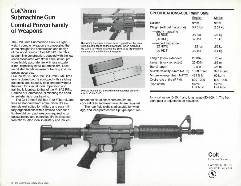 1985 Colt 9mm SMG One-Sheet Front of one-sheet Back of one-sheet Share this: Click to share on X (Opens in new window) X Click to share on Facebook (Opens in new window) Facebook More Click to share on Reddit (Opens in new window) Reddit Click to share on Pinterest (Opens in new window) Pinterest Like Loading...