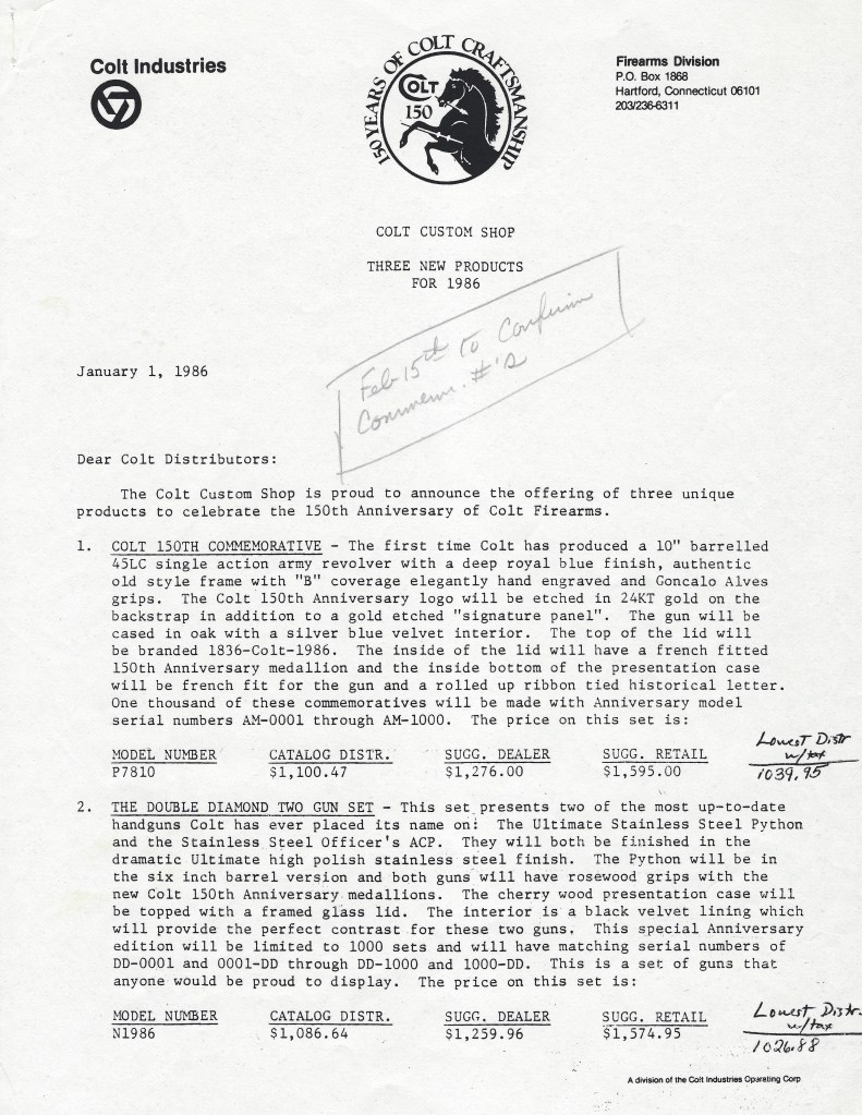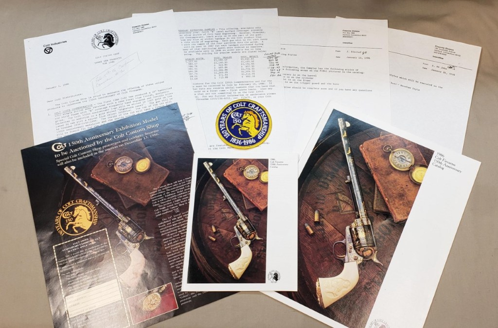 I purchased this Colt 1986 150th Anniversary document grouping from Gun Broker for forty-five dollars (May 2020). The grouping consists of: