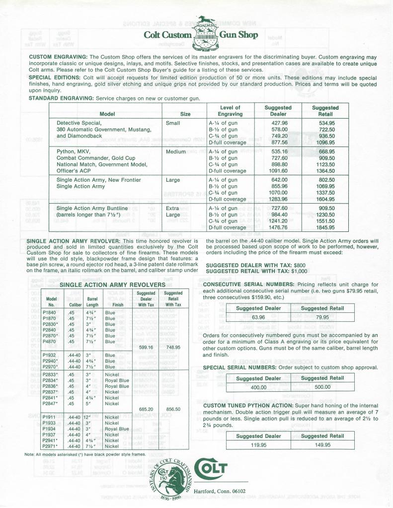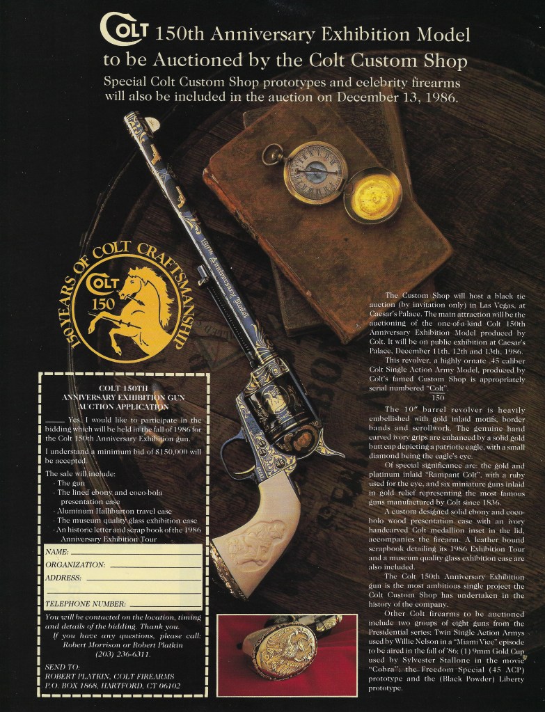 Below is shown the Colt 150th Anniversary Exhibition firearm promotional sheet for the revolver being auctioned as part of the exhibition. It is a single sheet but is two-sided.