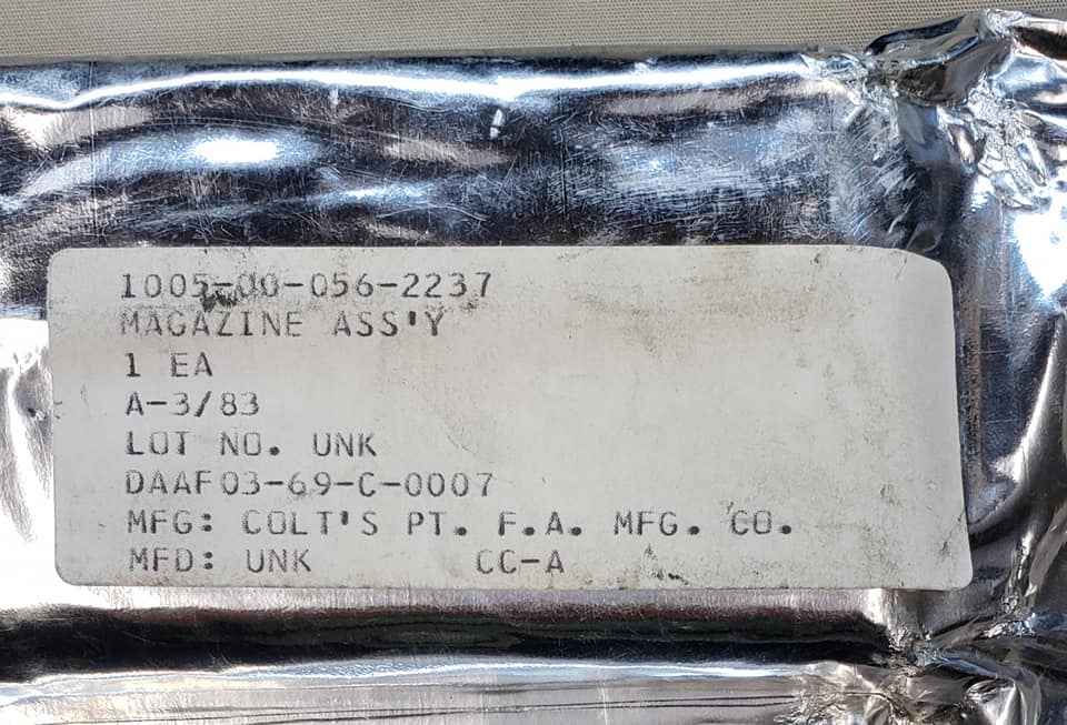 5.56 20-Round Magazine, 1983 Military Packaging Purchased at a gun shop in Oklahoma in March 2019 for $19.99. Universal Industries manufacturer mark. Share this: Click to share on X (Opens in new window) X Click to share on Facebook (Opens in new window) Facebook More Click to share on Reddit (Opens in new window) Reddit Click to share on Pinterest (Opens in new window) Pinterest Like Loading...