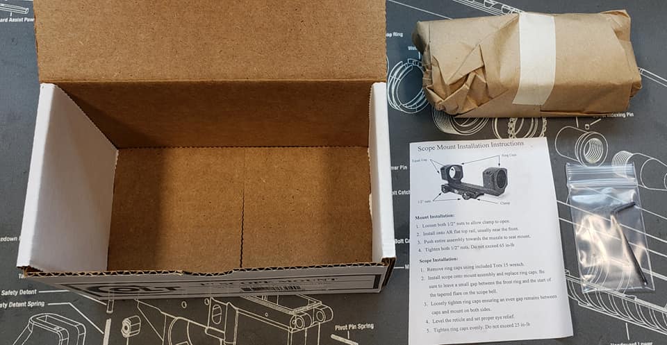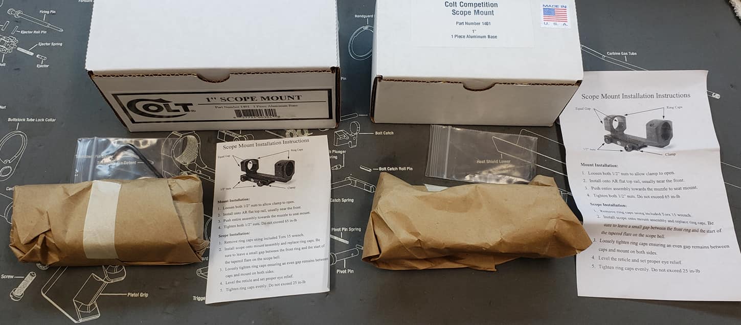 Although I am glad that I have added the packaging variation to my collection, I was a bit disappointed with the quality/effort that went into the product. My primary complaint is the scope mount instructions which are a lopsided photocopy that is also a misshaped cutout. The scope mount was $70…I would expect something of better quality and professional presentation like the Colt Competition product that I show in the photos above. You can see detailed photos of the Colt Competition product that were previously posted on the site at this link: https://thecoltar15resource.com/colt-competition-1-scope-mount/
