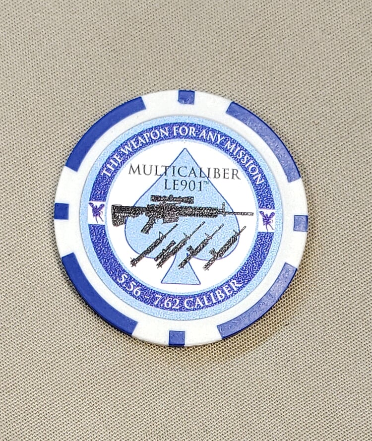 - Images of a 2011 Shot Show poker chip featuring the LE901 (advertising/promotional section)