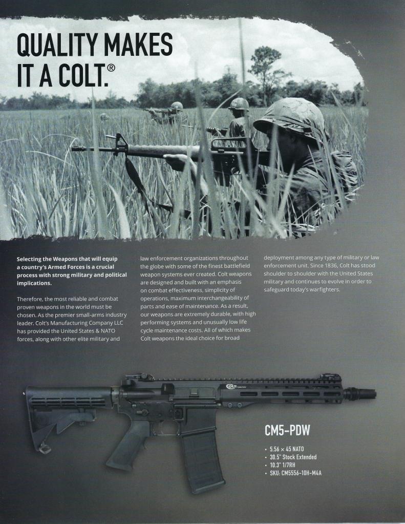 The Colt 2020 International Military & Law Enforcement trifold catalog was available at the 2020 Shot Show in Las Vegas. I was unable to attend but was very lucky to have an attendee that thought about me and grabbed one for me. I am very grateful! The catalog shows 12 different weapon variations that are targeted to the international market.