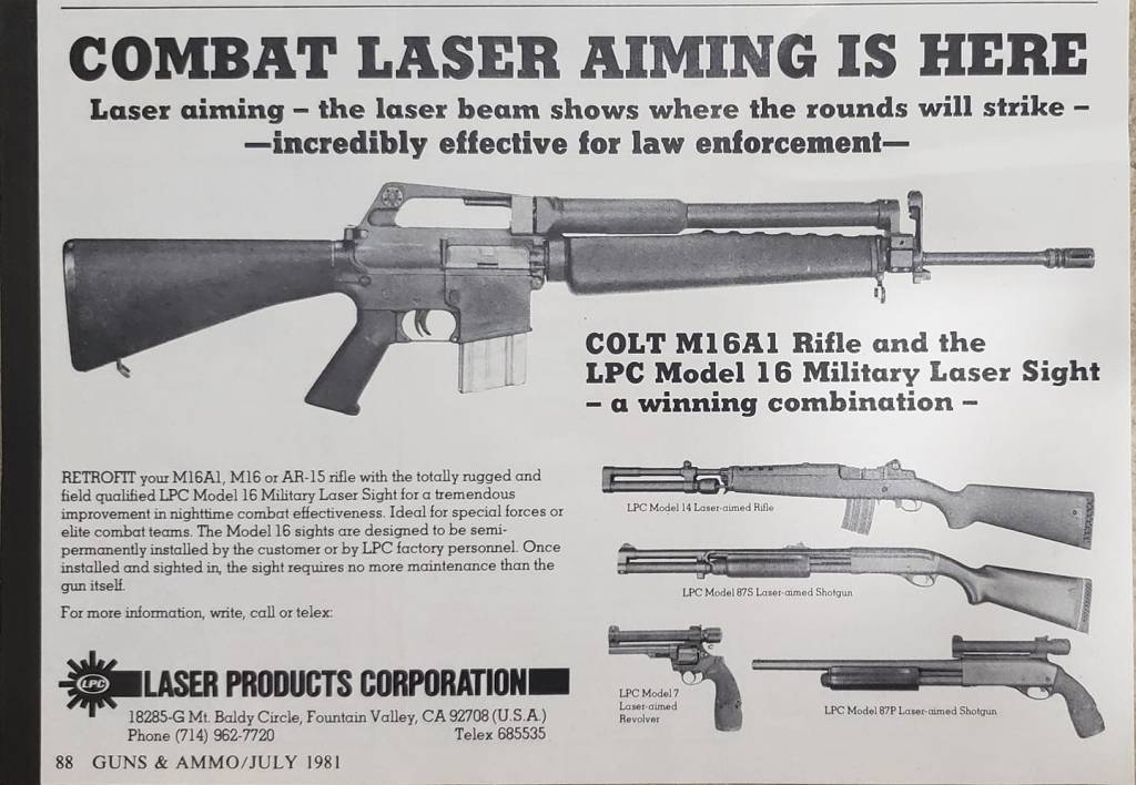 Received in the mail today….1981 advertisement for the Laser Products Corporation LPC Model 16 Military Laser Sight for the Colt M16A1 rifle.