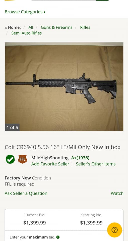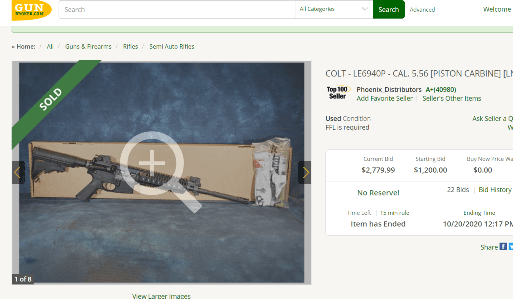 Colt LE6940P (Piston)- This uncommon new-in-box example sold for $2779.00. The prices on these continue to creep up.