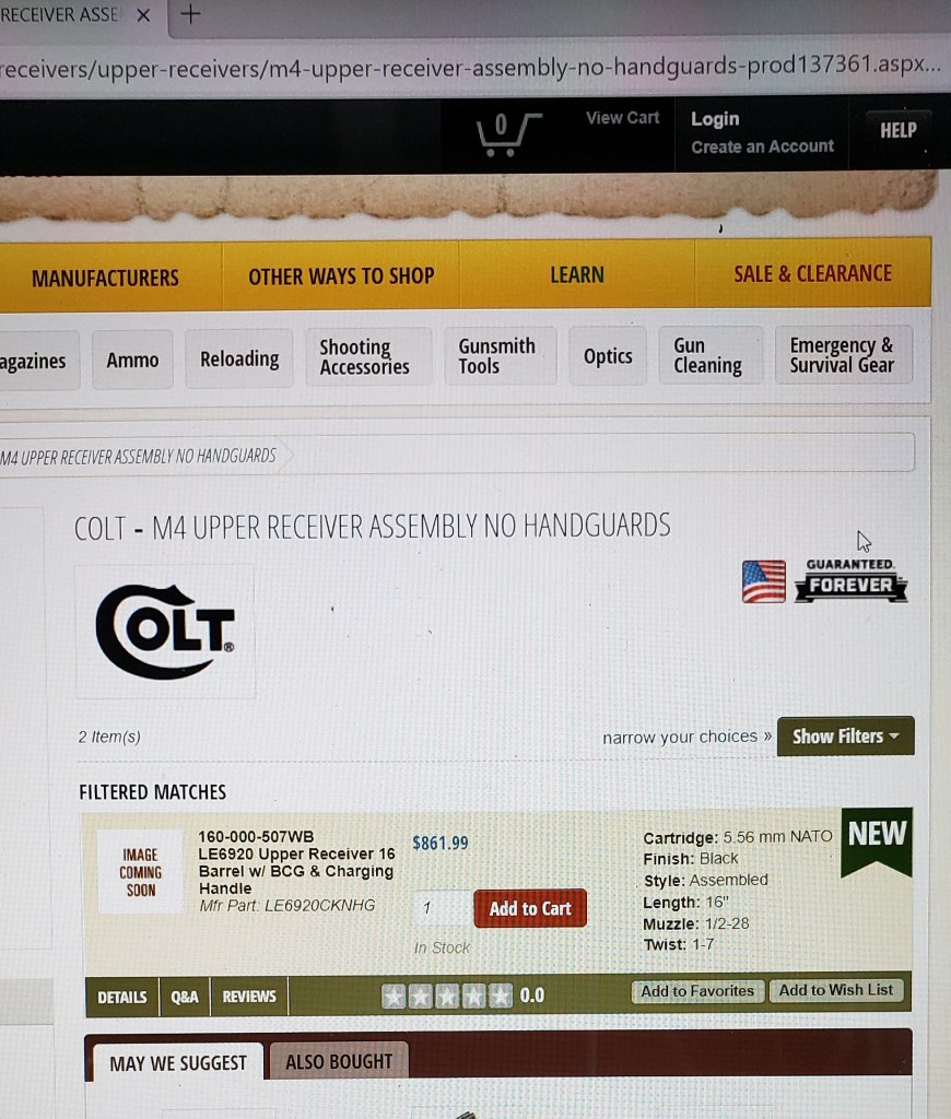 I have always been a big supporter of Brownells but this makes it hard to have a positive opinion of them. $861.99 for a run of the mill LE6920 upper with no hand guards is pretty steep.