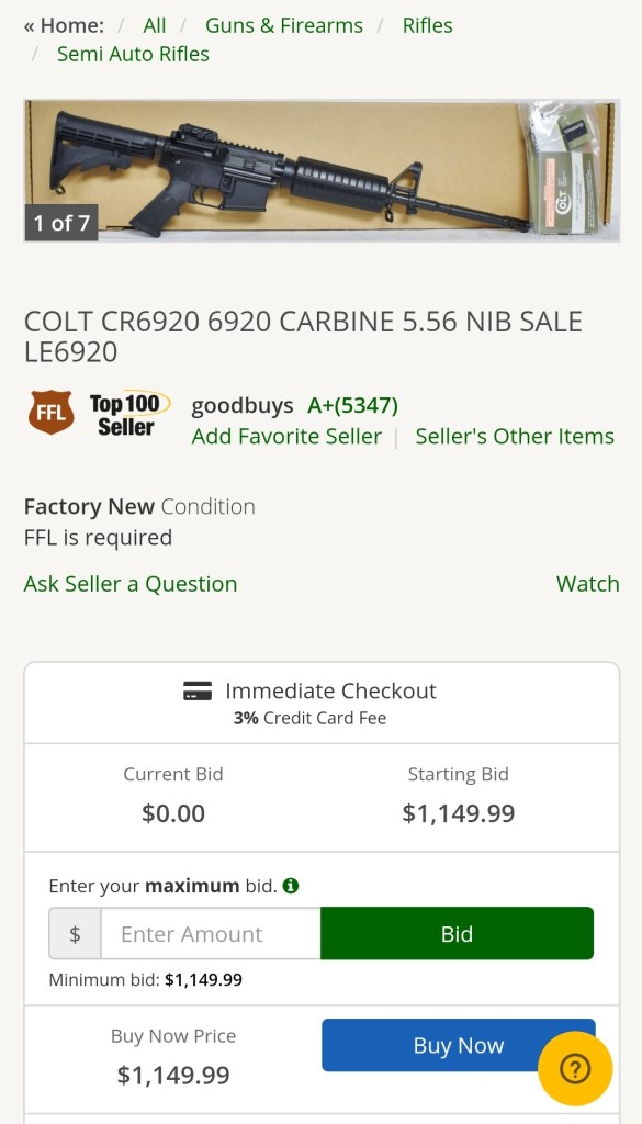 One thing that has been interesting is watching the climb in sales prices of Colt AR’s….any Colt AR. There are many unique Colt AR’s hitting the market as people look to cash in the currently elevated values. Here are a couple of recent auctions that caught my attention.