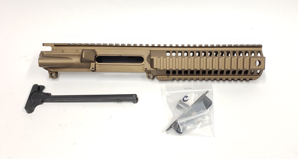 The upper receiver parts are going to be installed on a stripped Colt 6940 FDE anodized upper receiver that I got in a Gun Broker auction.