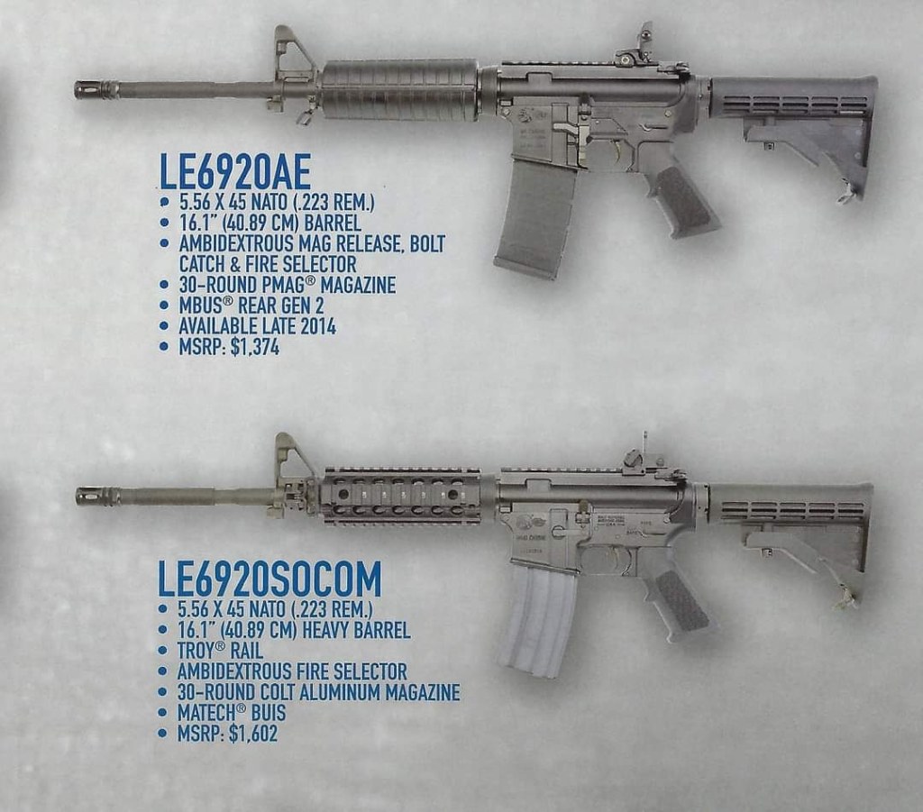 2. The LE6920SOCOM is listed with the Troy rail system. Although we have known for years that Colt made the 2013 model SOCOM with the Troy rail, this is the first time I noticed it formally acknowledged.