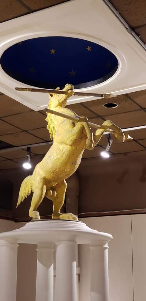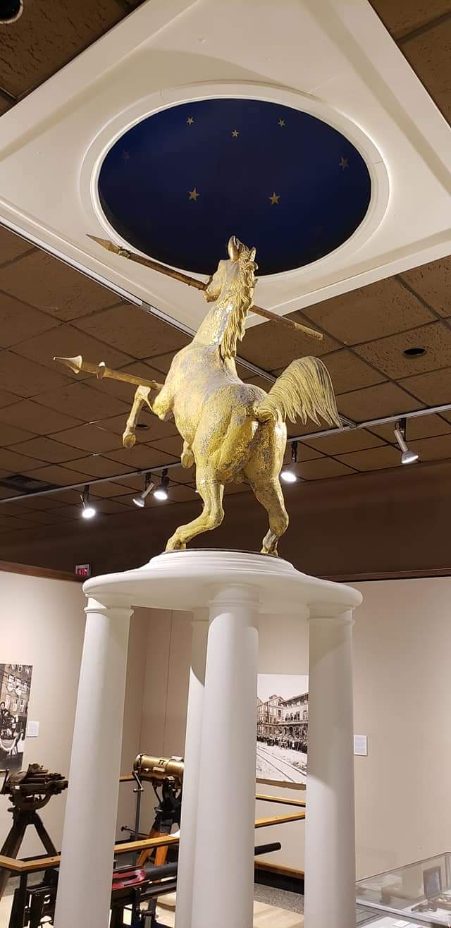 A follower on the Instagram page asked for an explanation of the item being carried in the Rampant Colt’s mouth and on it’s legs. So, I put together a post about it. The images I am posting here were taken by me in 2019 and are the ‘Rampant Colt’ from the early Colt plant in Hartford, CT. It is on display in the Connecticut State Library Colt firearms collection.