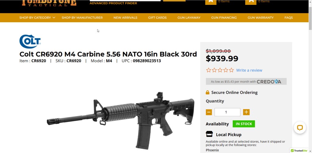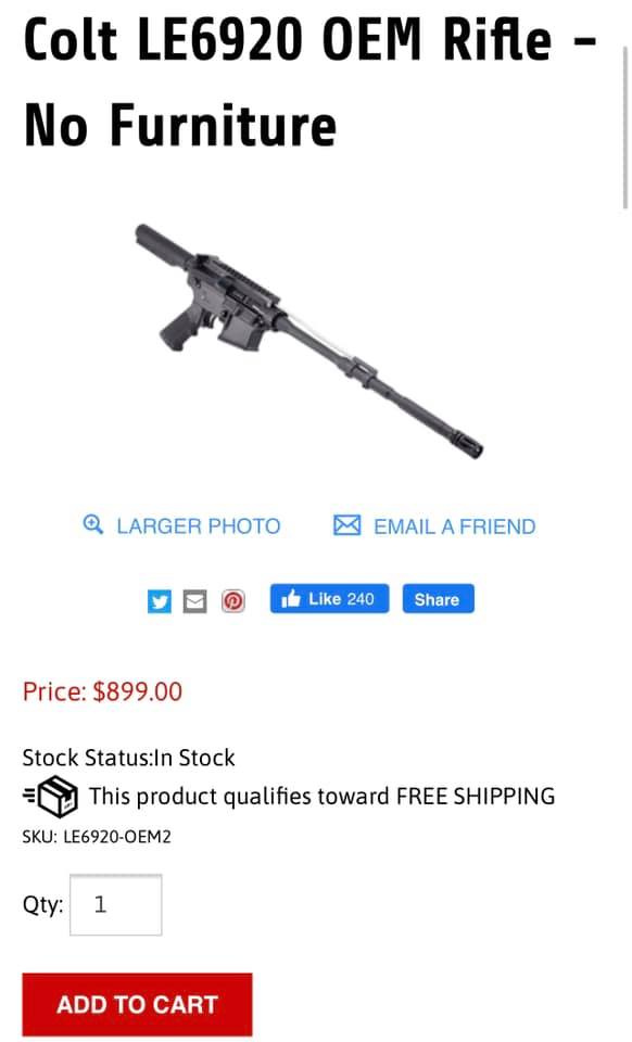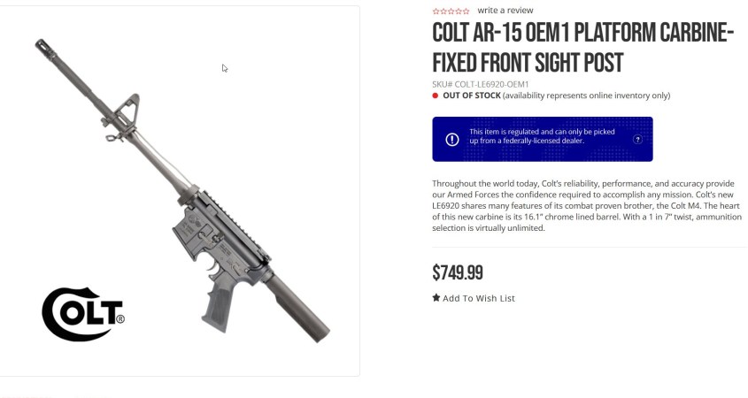 I haven’t seen any significant activity with the remaining Colt rifles and carbines in the new CR (Colt Rifle) series. The CR6920MPS-B, CR6920-EPR, CR6700A4 (20″ rifle) all seem to be readily available and at pretty stable prices.