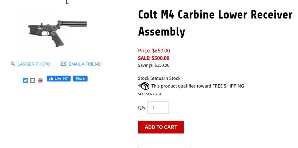 CR6920 lower receivers that have the new ‘Carbine’ marked lower receiver can be found as low as $500 as shown below in the sales page on Arms Unlimited website.