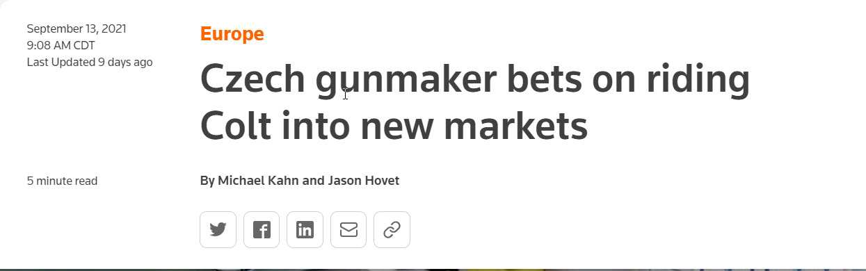 Reuters did an interesting piece on Colt on September 13th. Here is the link to the article: