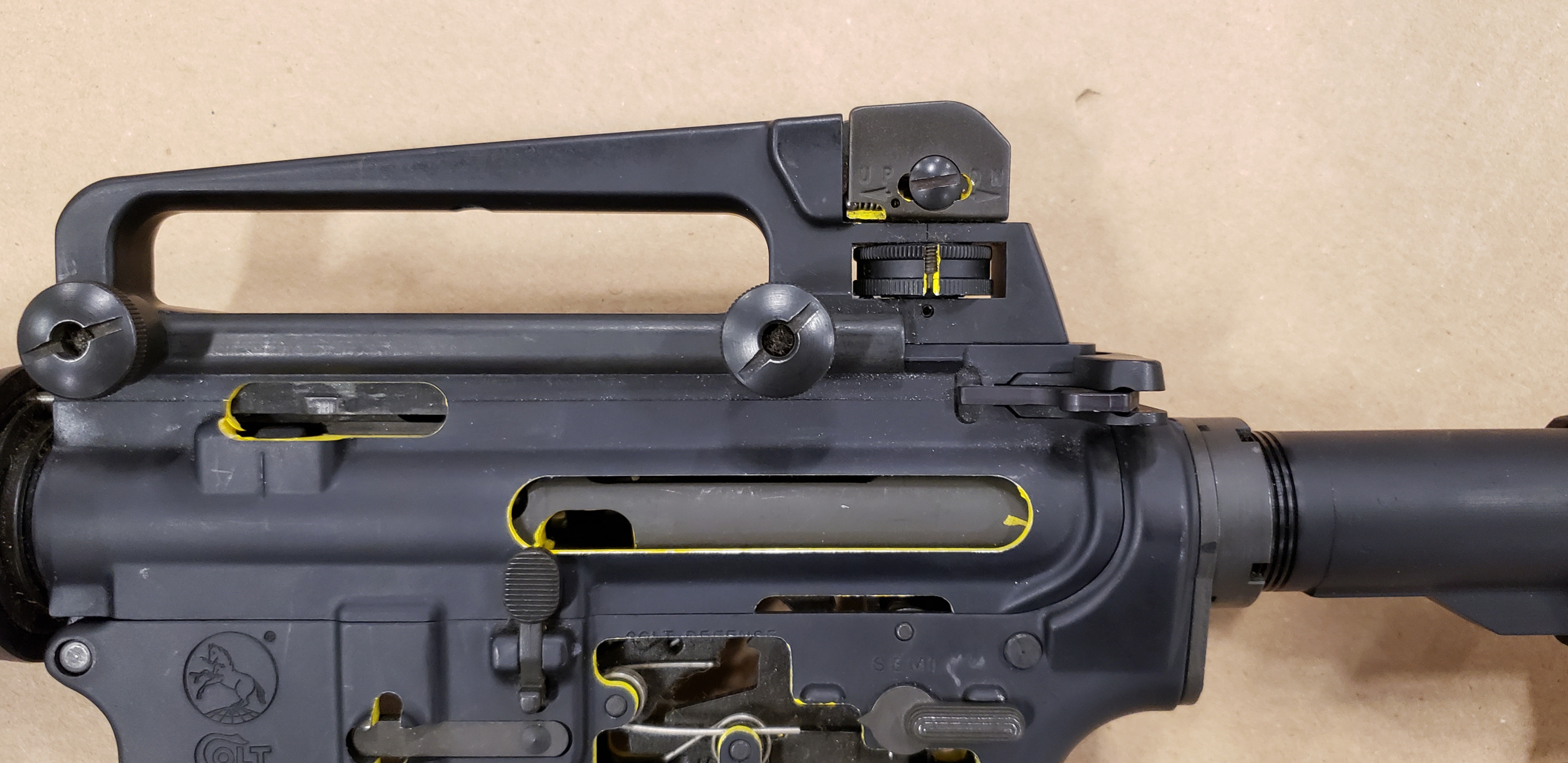 Here is a unique Colt upper receiver assembly that I recently picked up. This upper receiver assembly has one of the uncommon Colt Defense labeled Troy rails.