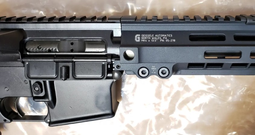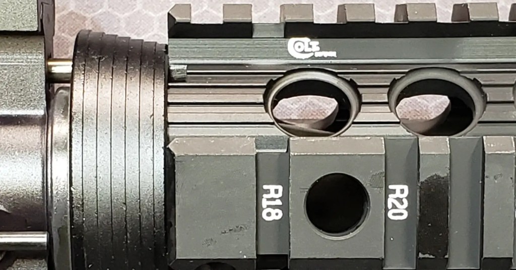 This is the only production carbine manufactured by Colt to use a Geissele rail.