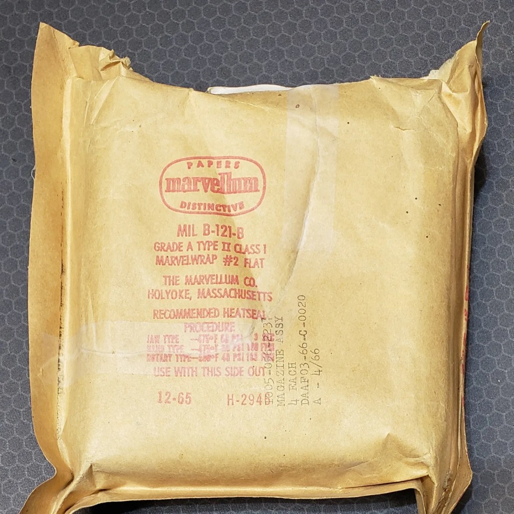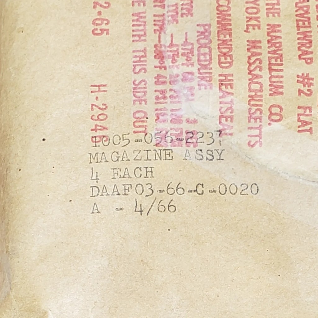 This set of photos (and video) shows an opened (obviously) 4-pack of ‘new’ Colt 20-round magazines as they were provided to the U.S. military in 1965 – 1966 time frame.
