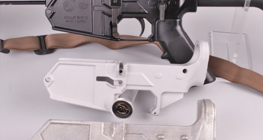 In the photo below, we see three Colt LE901 lower receivers that are in three different levels of completion.
