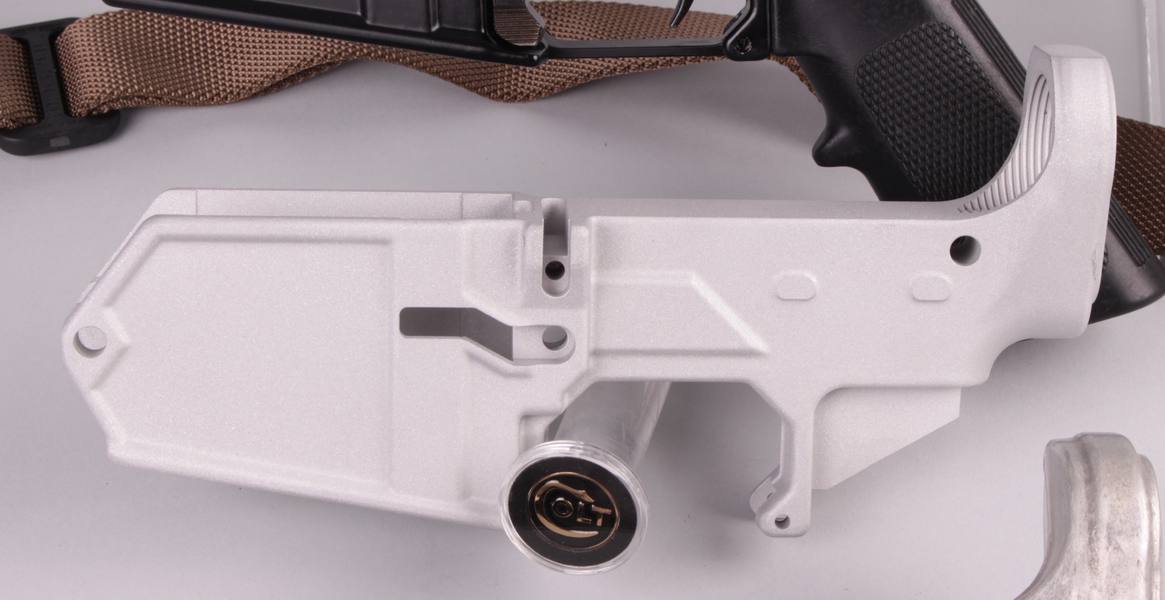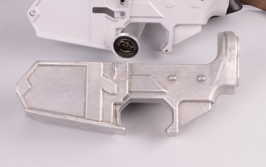 The middle lower receiver (satin appearance) is an 80% lower that has had the initial surface finish done.