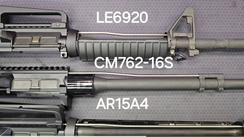 I have had a few questions about the length of the gas system on the Colt CM762-16S that I bought from Arms Unlimited recently. Here is a photo I took of the CM762-16S with a carbine upper receiver and a rifle upper receiver.