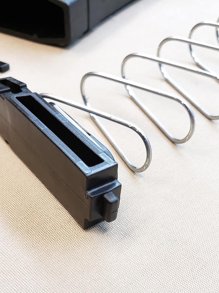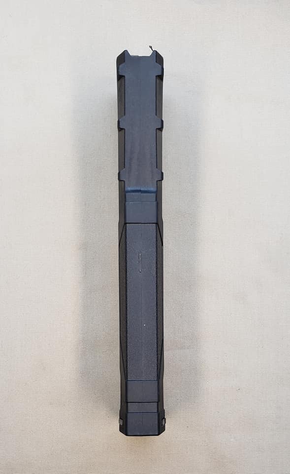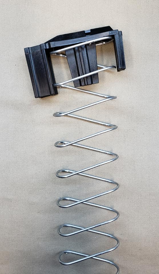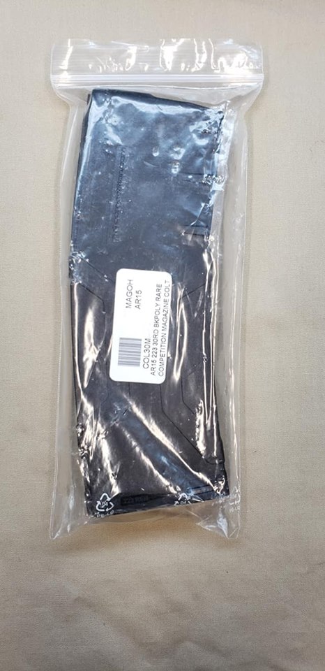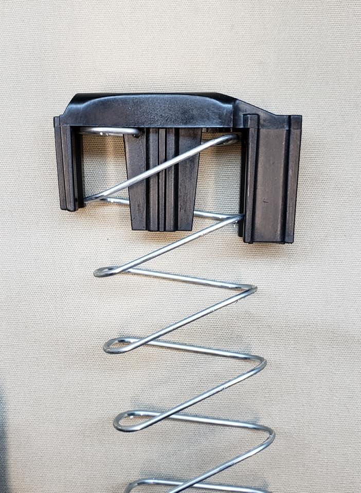 This magazine was purchased for $20 at a gun show in Kansas City in late 2018. This magazine is polymer. Notice the removable locking tab that holds the magazine base in place.