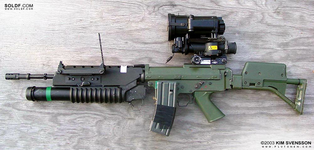 The Ak 5 or Automatkarbin 5 (“automatic carbine 5”, “automatic carbine” being the Swedish term for assault rifle)[2][3] is the Swedish version of the FN FNC assault rifle with certain modifications, mostly to adapt the weapon to the partially subarctic Swedish climate. The Ak 5 is the service rifle of the Swedish Armed Forces. The Ak 5 replaced the Ak 4 (a licensed-produced version of the Heckler & Koch G3) in Swedish service. Later versions also accept the Colt M203 grenade launcher attachment. The current standard issue version is the Ak 5C.