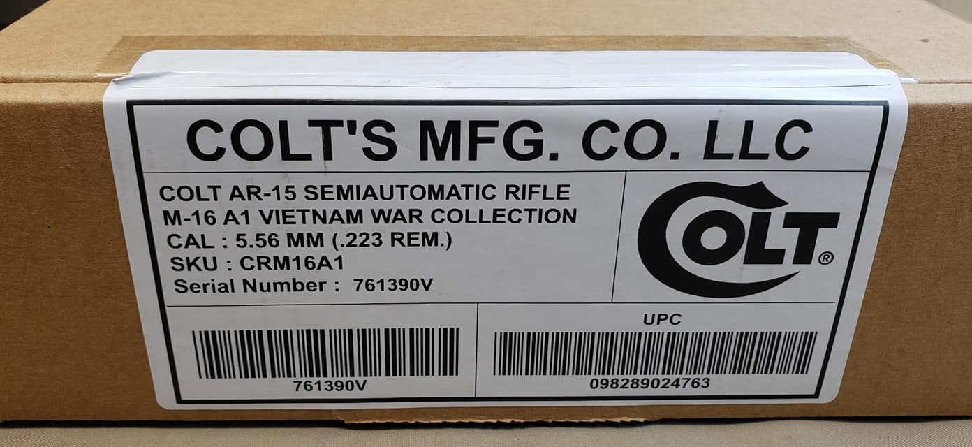 The Colt CRM16A1 rifle is the first rifle in the Colt “AR-15 Military Classics” line of AR-15 rifles. Production of the CRM16A1 is limited to 2500 rifles. All serial numbers used in production of the CRM16A1 rifles replicates the serial number of a Vietnam War era rifle. A V has been added to the end of the serial number to differentiate the new production rifle from the original production rifle and the V also acknowledges its association with the Vietnam War.