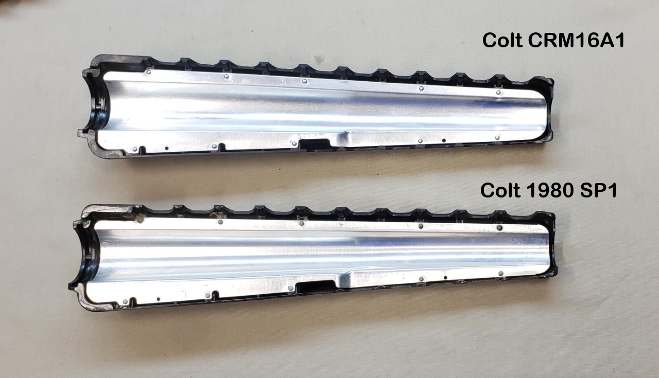 My overall thoughts when comparing the hand guards is that the new production hand guards are a better product. The SP1 hand guards are pretty rough and kind of brittle feeling. The hand guards on the CRM16A1 have a better feel, have consistent finish and are accurate when compared to online resources. Undoubtedly, those building a clone will vote for original hand guards but the purchaser of the CRM16A1 will be getting well made, new production hand guards.