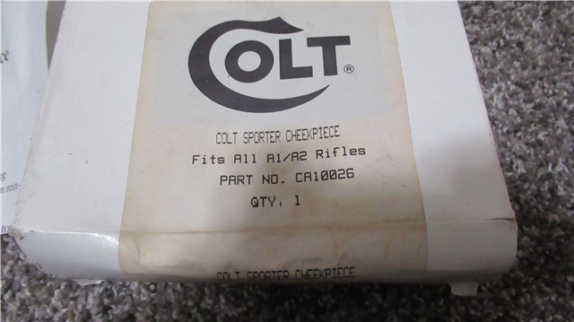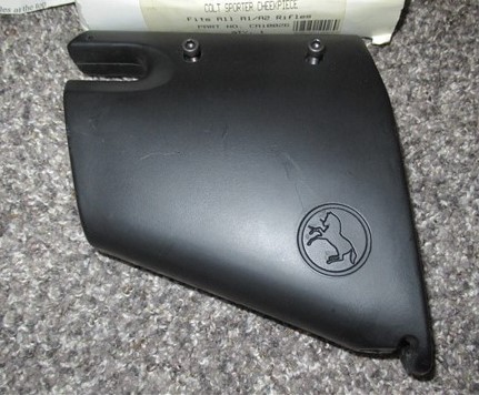 The Colt Sporter Cheekpiece was designed to provide elevation of stock cheek weld when using carry handle mounted optics on Colt AR-15 rifles. These cheekpieces came as factory installed accessories on the R6600DH Delta Elite, R6601DH Sporter Match Delta Elite and the R6700CH Sporter Competition HBAR rifles. They are compatible with standard fixed buttstocks only.