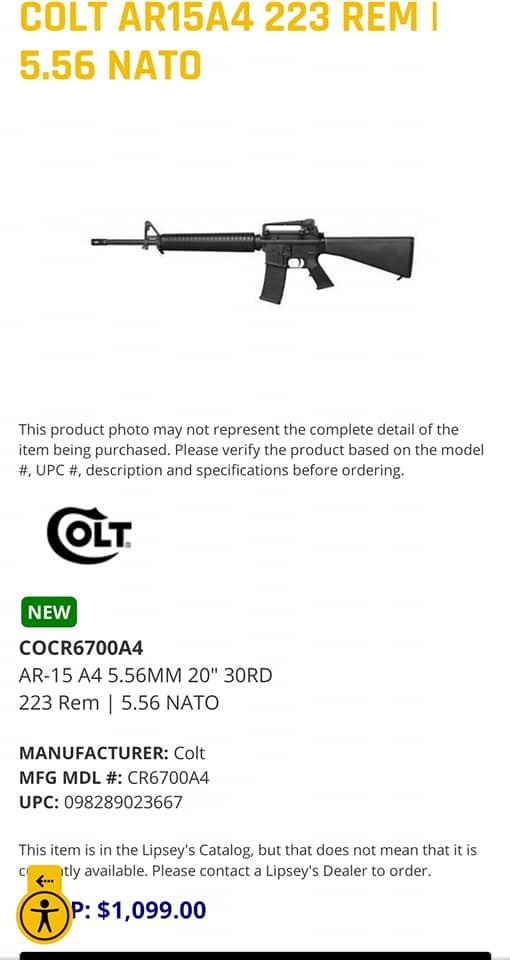 The image below is from the firearm distribution website for Lipsey’s. It shows an MSRP of $1099.00.