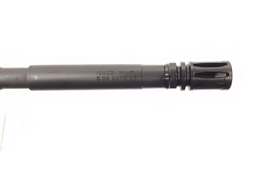 The CR6920 has a standard M4 profile, chrome-lined barrel. The markings on it are “13629 MP 5.56 NATO 1/7”. The barrel extension has a ‘o’ on the left side and a ‘4’ on the right side which indicates it is a Colt barrel extension. There is an ‘R’ stamped on the outside of the barrel indicating it is made by Rosco. There is not a barrel date present on this carbine. The carbine has a standard A2 flash hider.