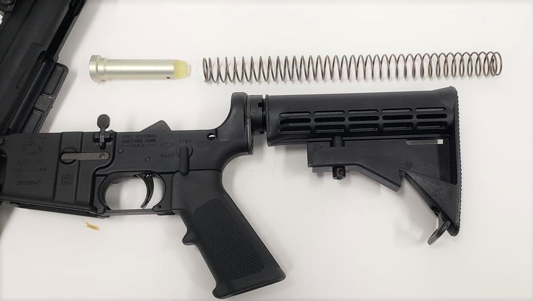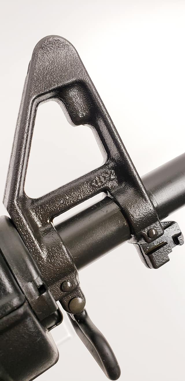 The pistol grip is a standard A2 pistol grip. It has ‘F1’ stamped inside the grip. The trigger assembly consists of Colt’s standard military specification trigger assembly. One change with the CR6920 that has been noticed by the AR-15 crowd is the transition from a ‘notched’ hammer to a rounded design. The hammer has Colt’s CAGE code present on the left side along with an ‘S’, an second ‘S’ and a ‘1’ on the right side.