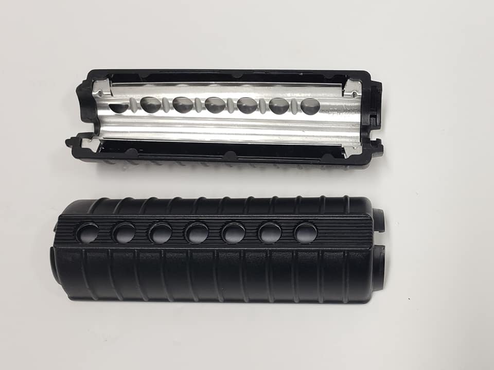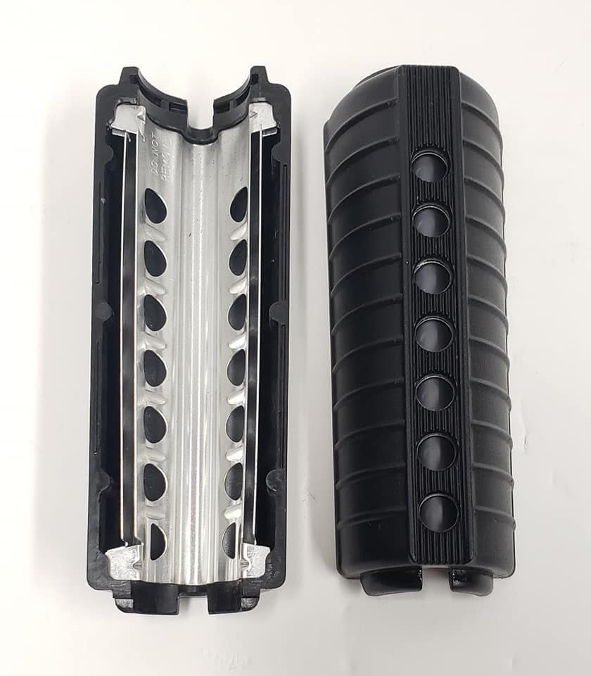 The handguards consist of two halves (top & bottom) which are standard 7-hole, double heat shield handguards.