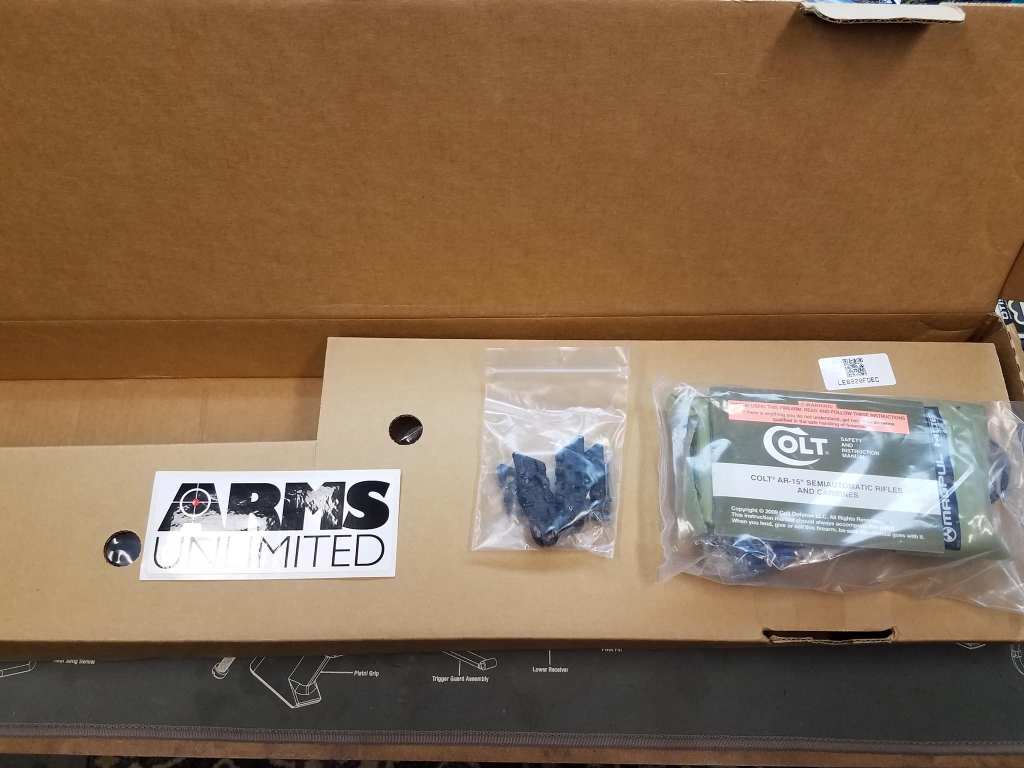 This LE6920 version was sold by Arms Unlimited exclusively about July 2018 to September 2018. The black, 2-piece rail assembly shown below was an assembly included by Arms Unlimited and did not come from the Colt factory. Initial sale price was $850.00 dollars. This rifle was purchased at a final sale price of $700.00. Rough production numbers are 250 to 290 rifles.