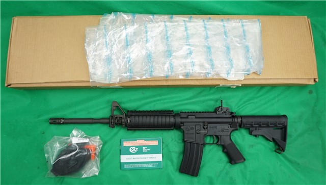 This example was seen for sale on Gunbroker January 2019. Due to the blue label on the box, it is believed that this rifle is from early in the SOCOM production run. The serial number is not found on the Colt.com serial number search as of 26 JAN 2019.