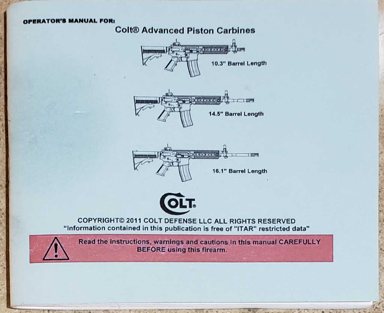 Manuals 1993 Colt Sporter RiflesDownload 1993 M16A2 Carbine, Commando, 9mm SMG & M4 Carbine (Downloadable)Download 1994 Colt Match Target Rifles (Downloadable) Download 1995 Semiautomatic Rifles & Carbines (Downloadable)Download 2010 LE6940, LE6943, LE6944, LE6945CQB, LE6946CQB Advanced Law Enforcement Carbine Operators Manual (Downloadable)Download 2011 Colt Advanced Piston Carbine Operators Manual Share this: Click to share on X (Opens in new window) X Click to share on Facebook (Opens in new window) Facebook More Click to share on Reddit (Opens in new window) Reddit Click to share on Pinterest (Opens in new window) Pinterest Like Loading...