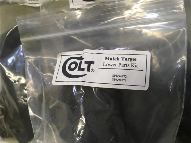 “These kits are approximately 15 years old and have the civilian semi auto large diameter hammer and trigger pins, the front pivot pin is not a push pin but looks like one. In the match target colts this front pivot pin is identical to the push pin in shape but is threaded on the end opposite the head and is held in place with a screw seen in the pictures. The threaded pivot (front) pin is the only component that is different from a standard colt push pin type kit.”